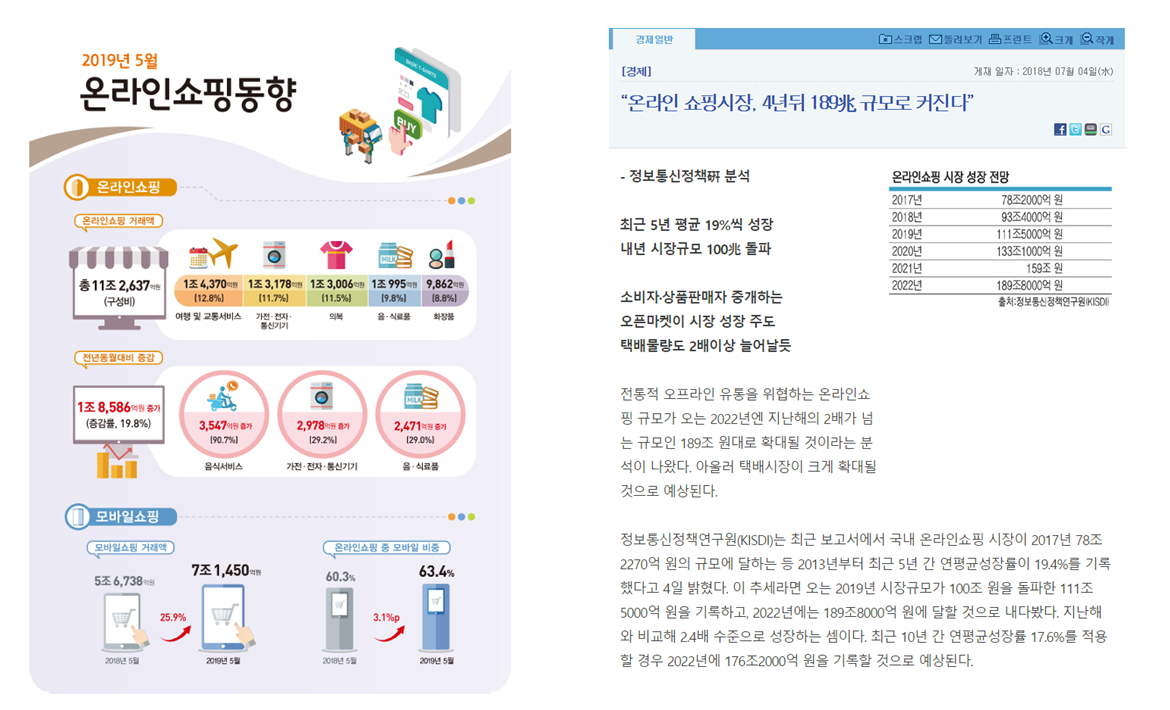 통계청 온라인쇼핑동향 ,신문기사 스크랩